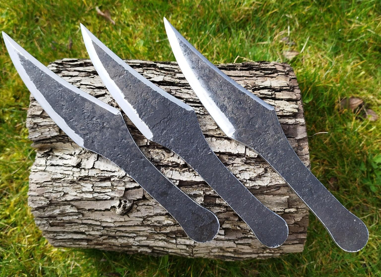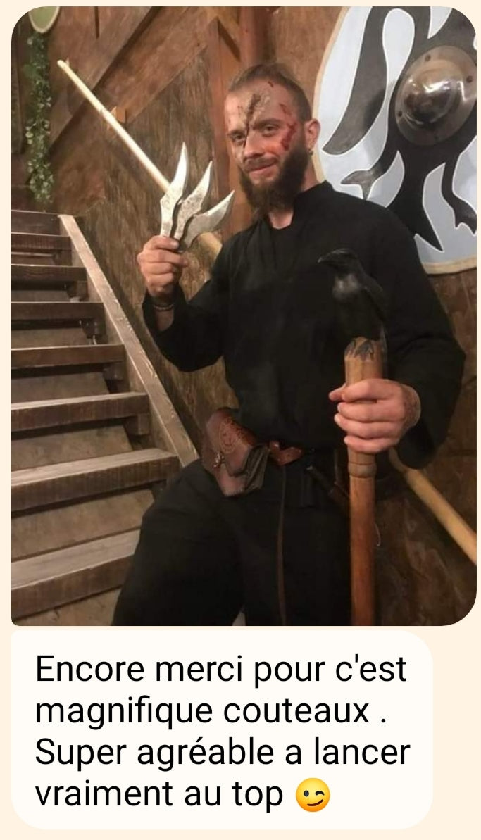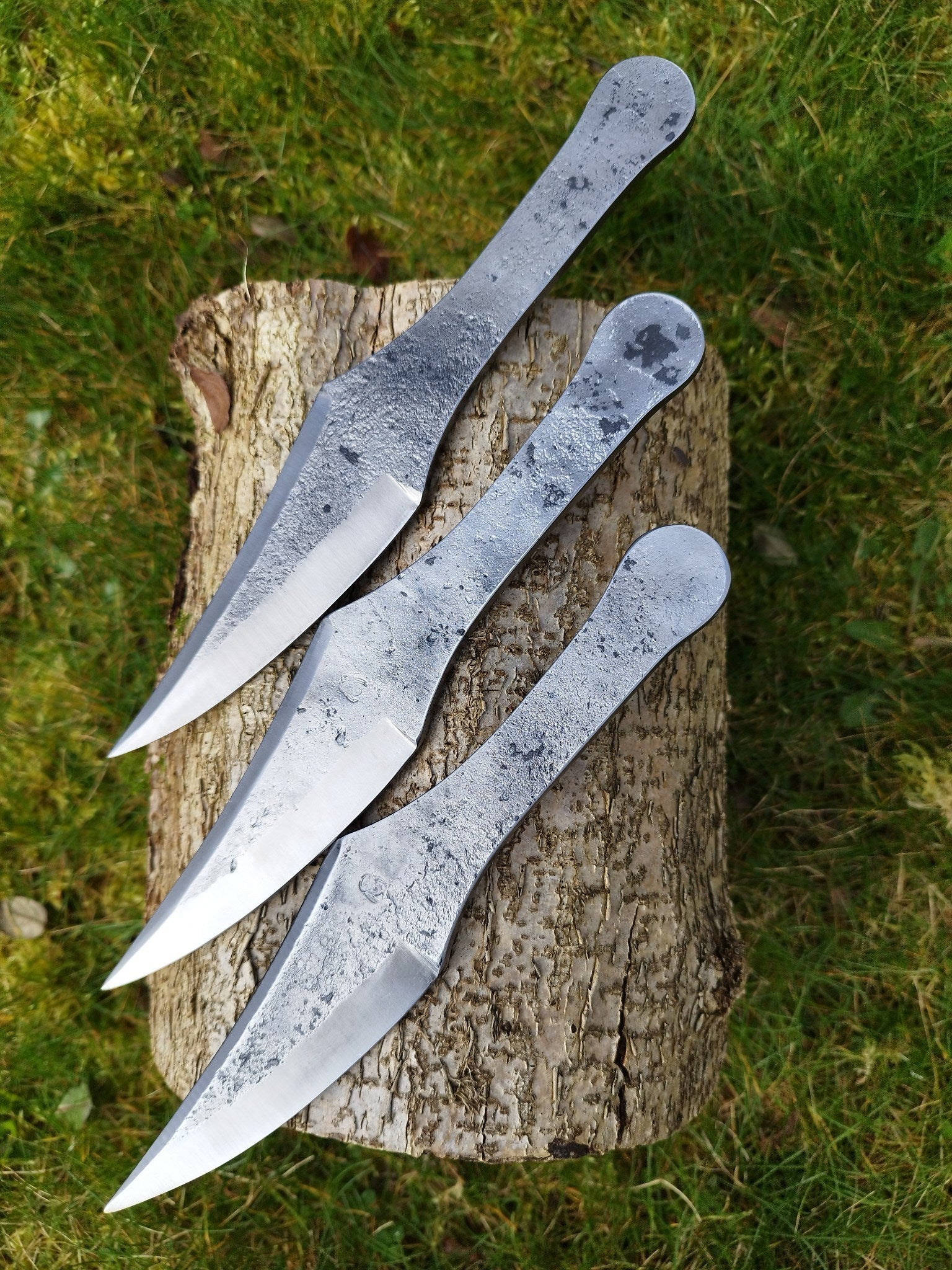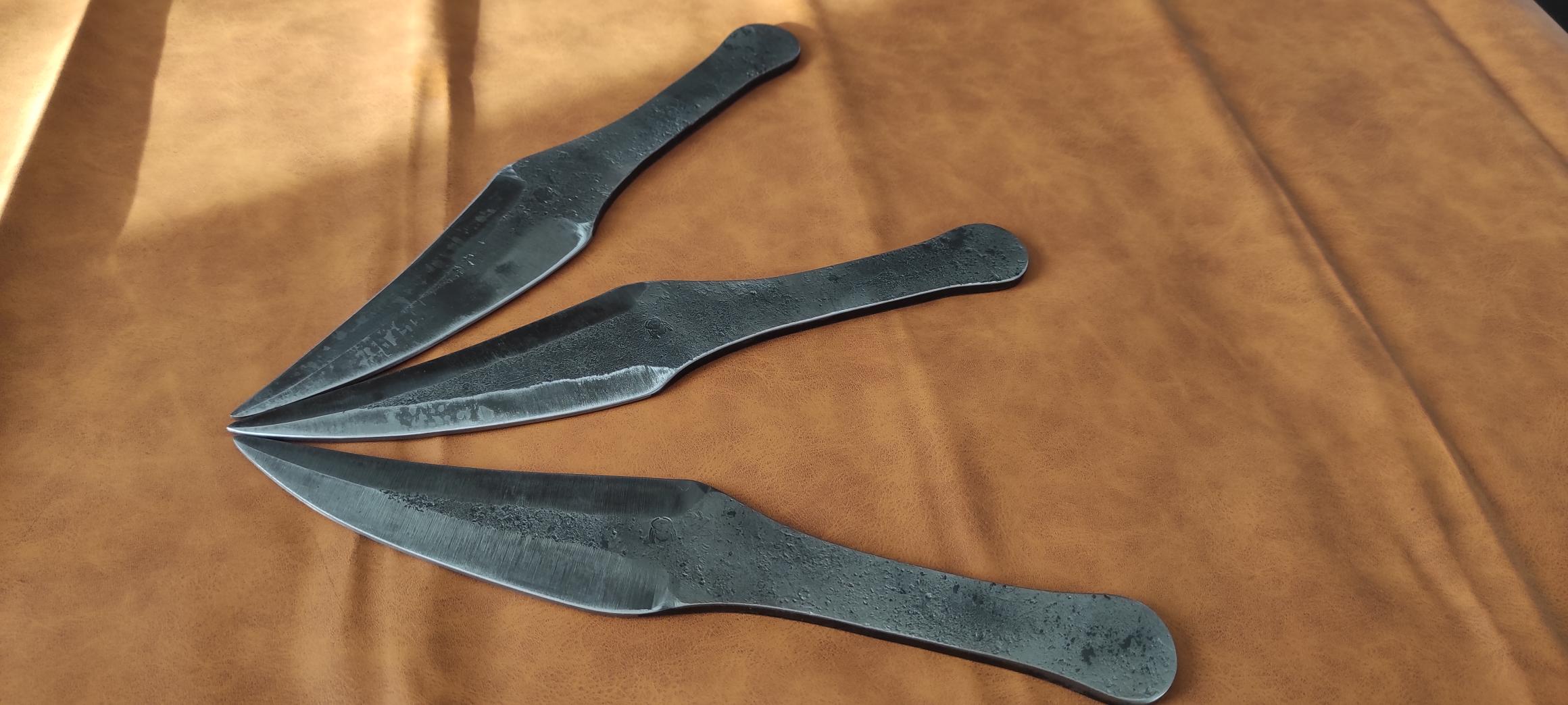 Créer suite à une commande de Manon, ces couteaux de lancer sont forgés dans un métal type XC 75.