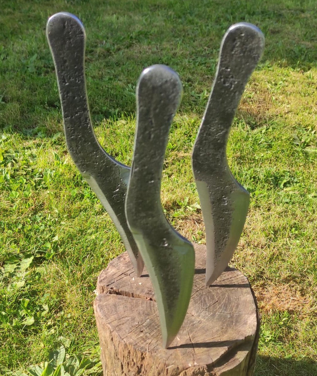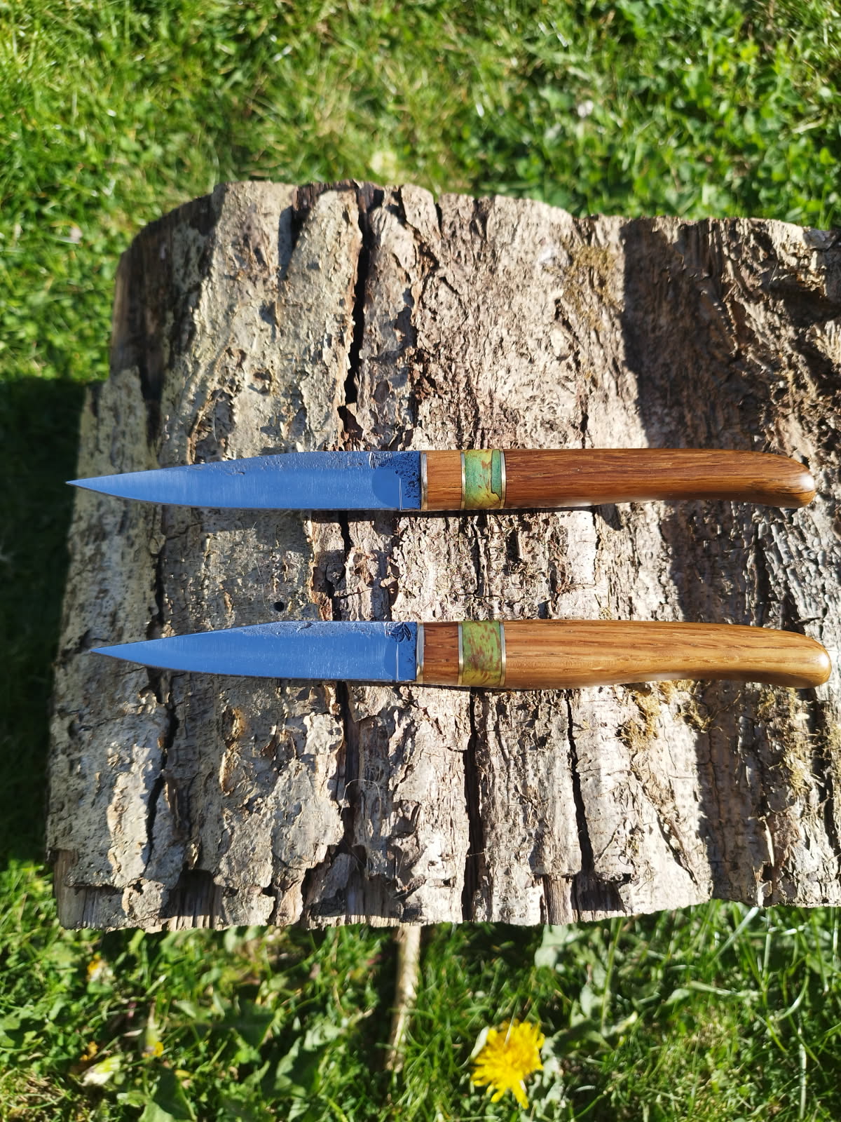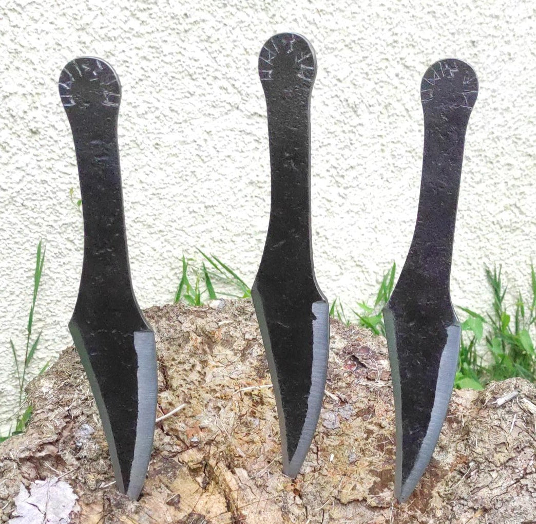 Créer suite à une commande de Manon, ces couteaux de lancer sont forgés dans un métal type XC 75.