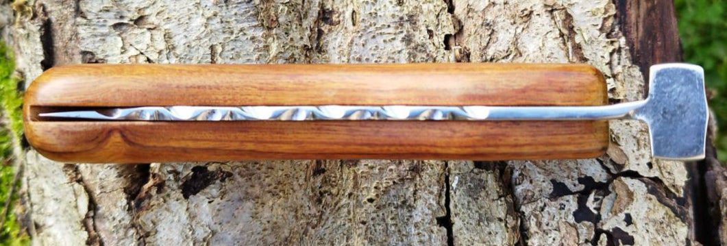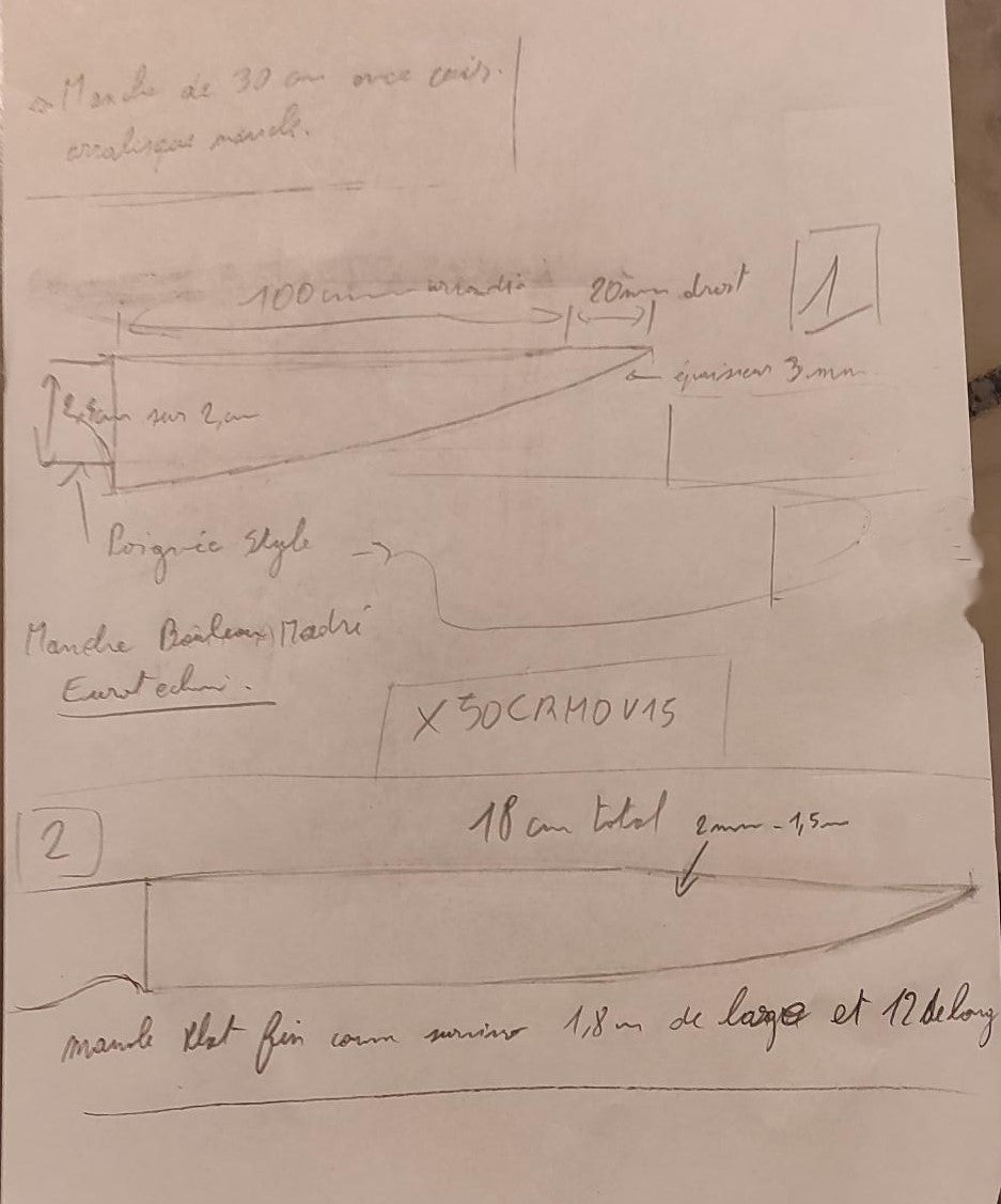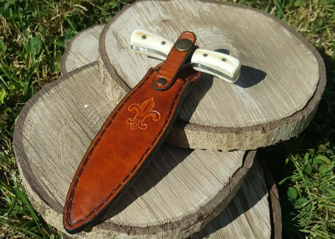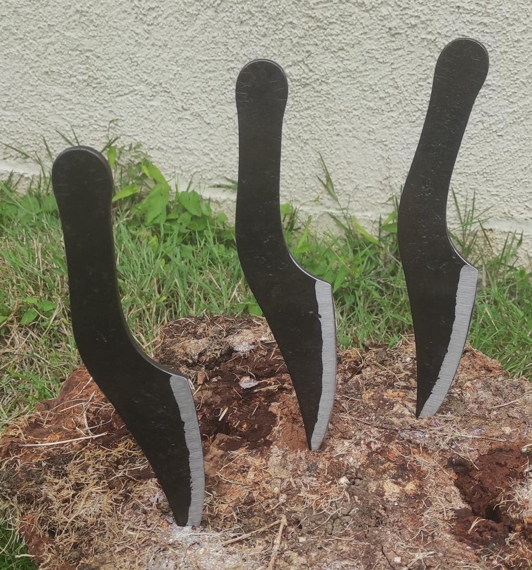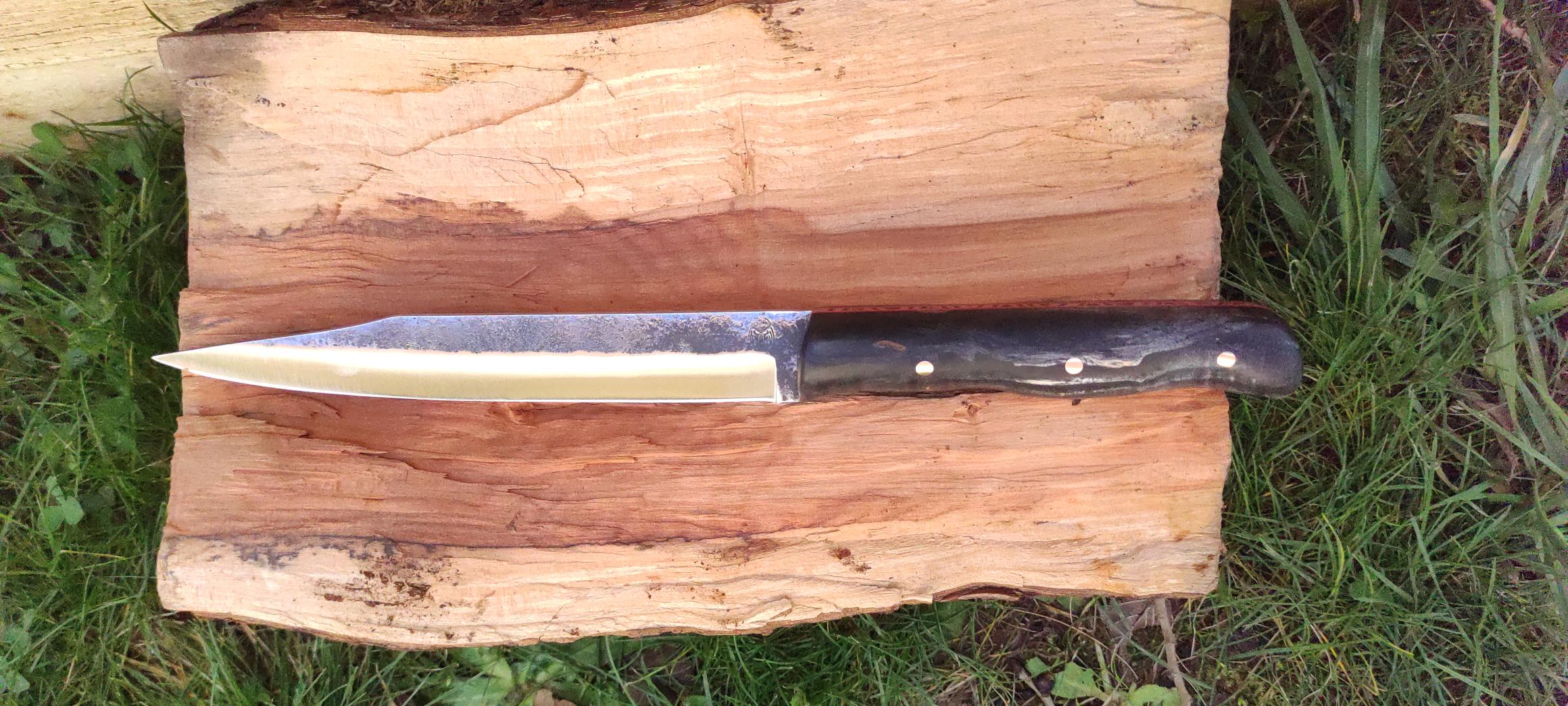 Créer suite à une commande de Manon, ces couteaux de lancer sont forgés dans un métal type XC 75.