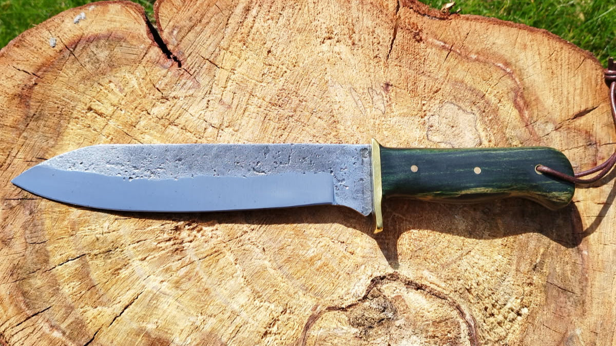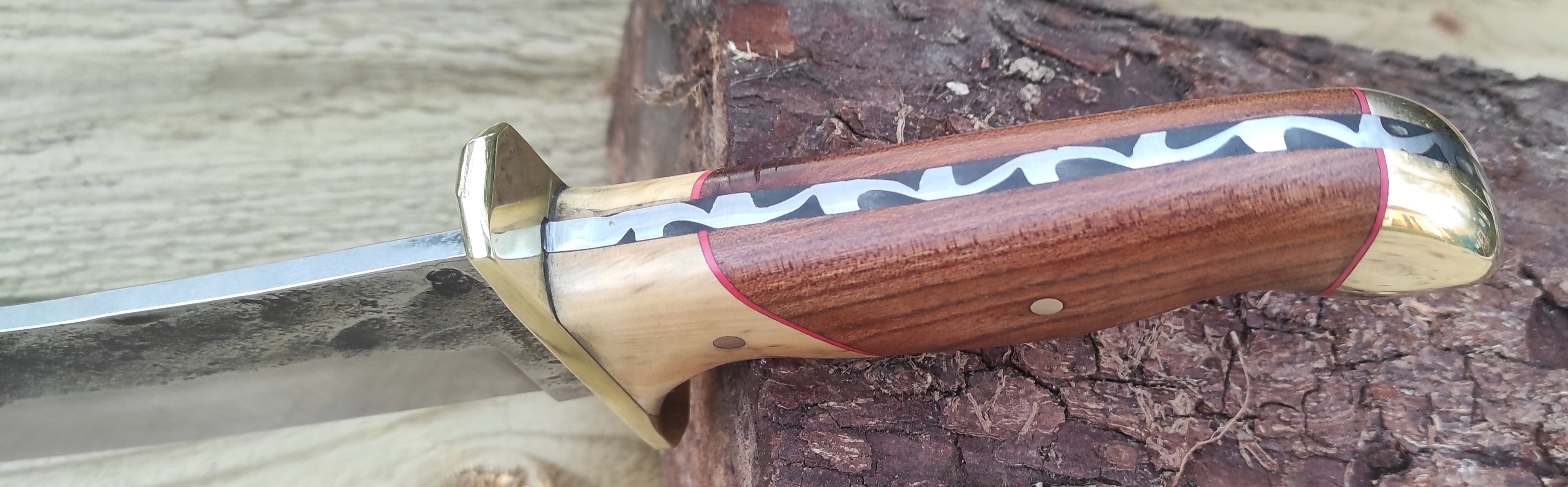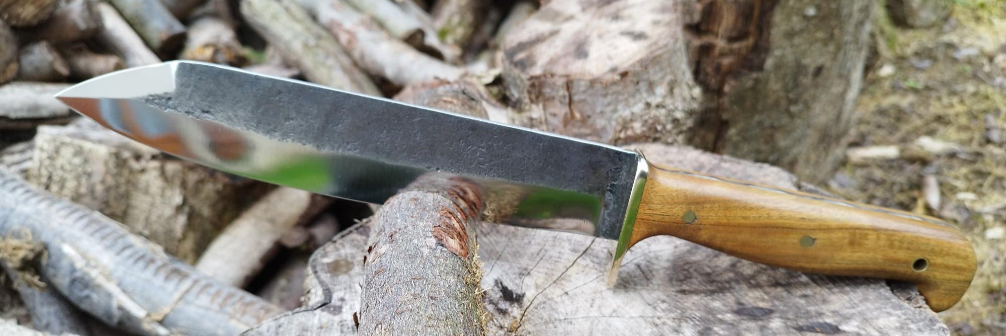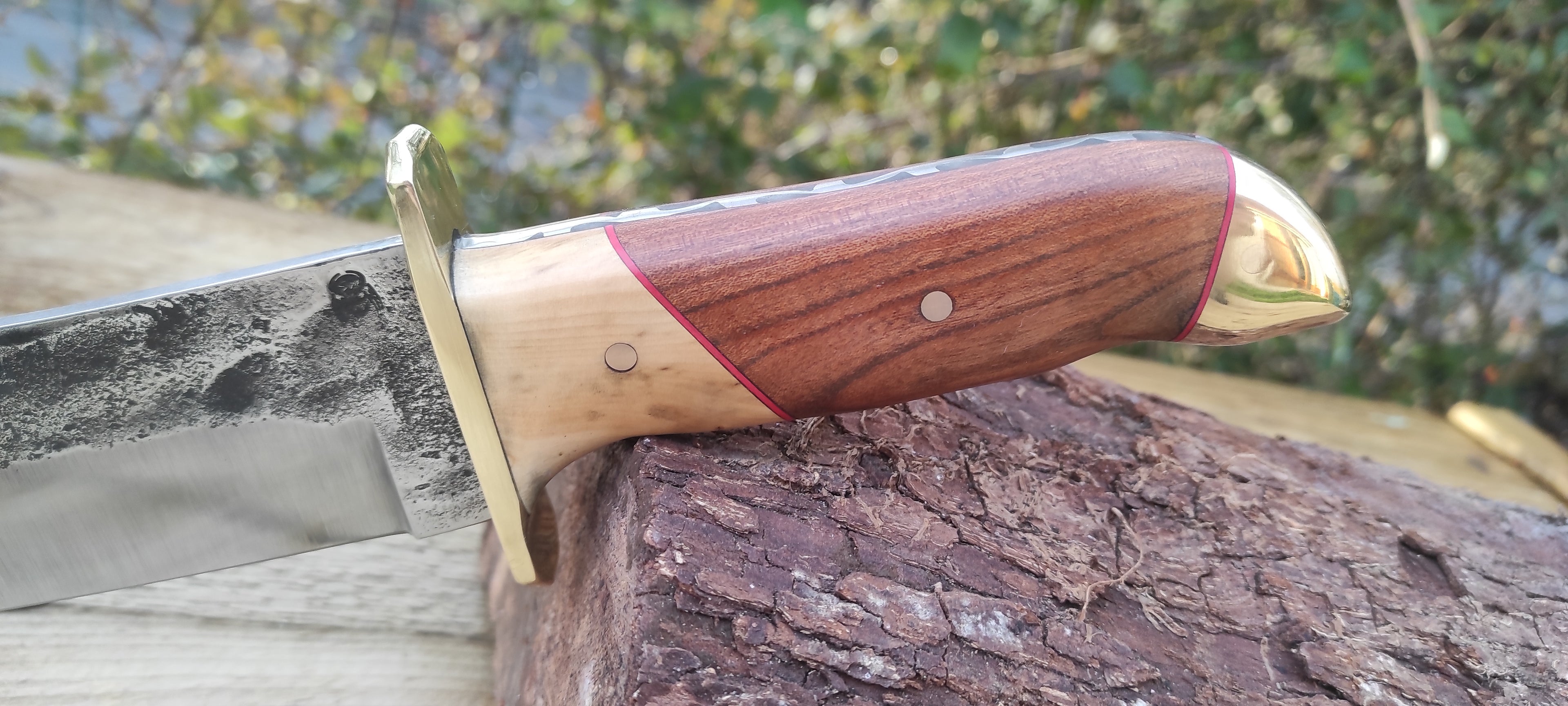 Fabriquer en lame de ressort de camion avec une garde en bronze et un manche en bois de chevreuil.