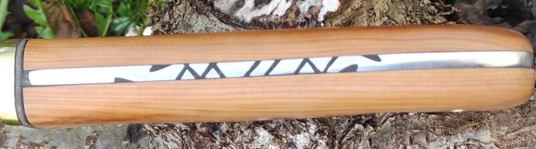 Manche : If avec de l’Érable Bleu Vert et du Laiton.