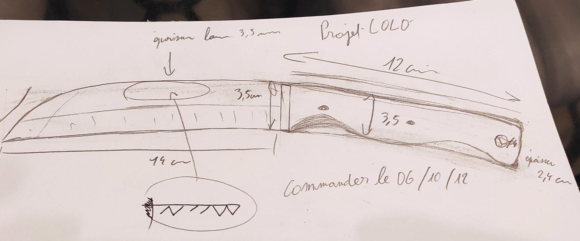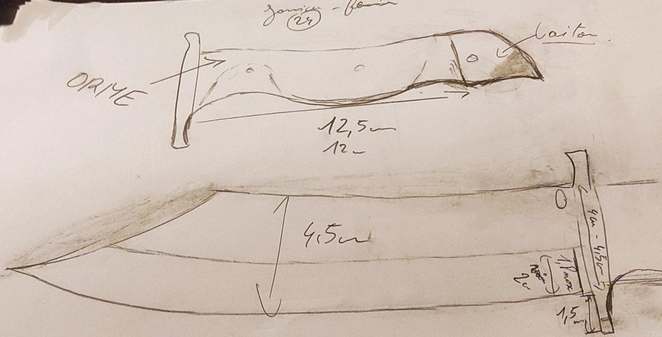 Couteau de Survie créé et dessiné selon les goûts du client.
