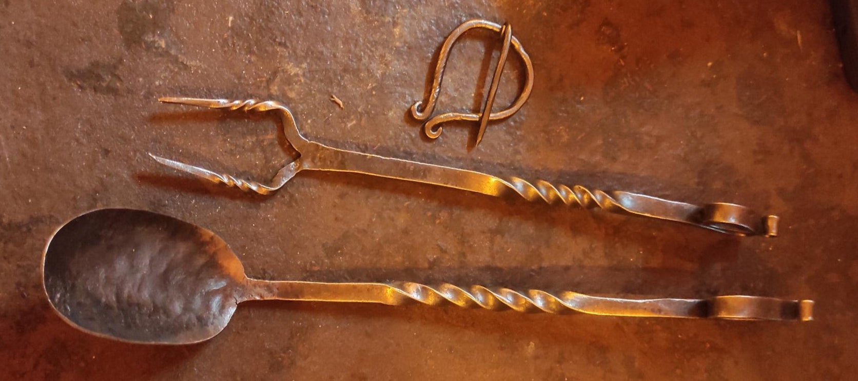 Fibule, Cuillère et Petite Fourche en fer forgé.