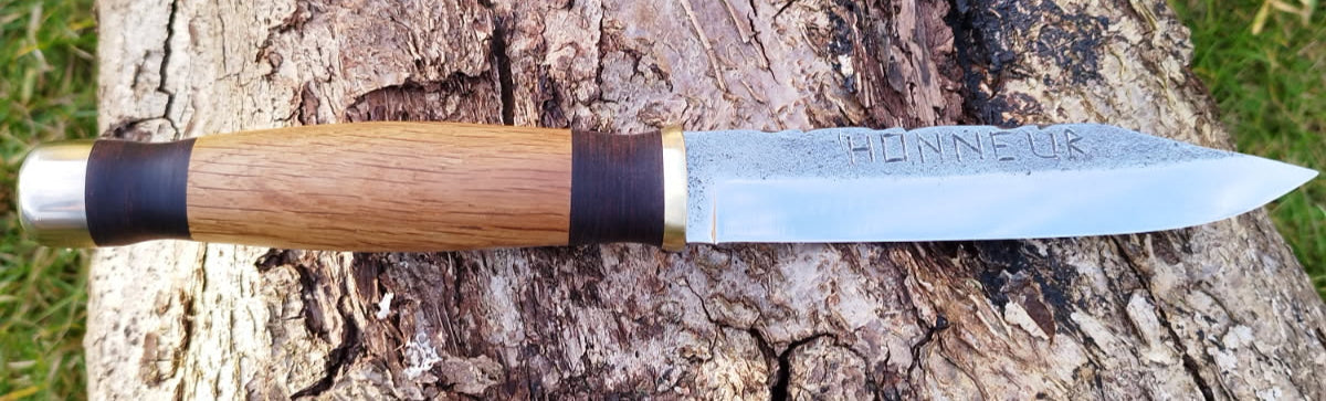 Couteau forgé en XC 75 avec gravure sur chaque pommeau.